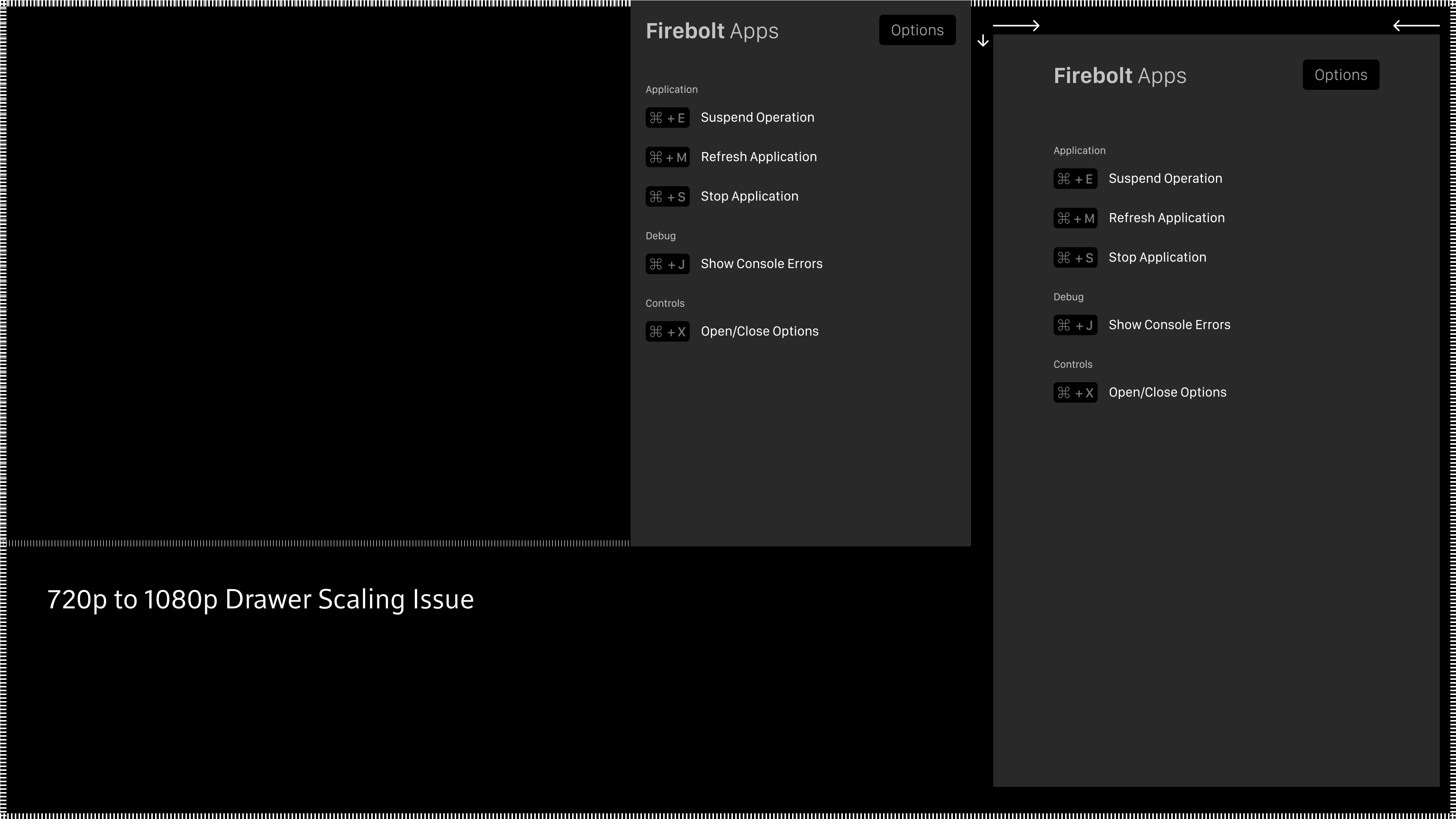 One unforeseen problem was with SVG's. Scaling became a problem from 720p to 1080p. The drawer wasn't scaling correctly; it showed too much horizontal white space. We solved it by including a second SVG but exposed a long term problem for other resolutions.