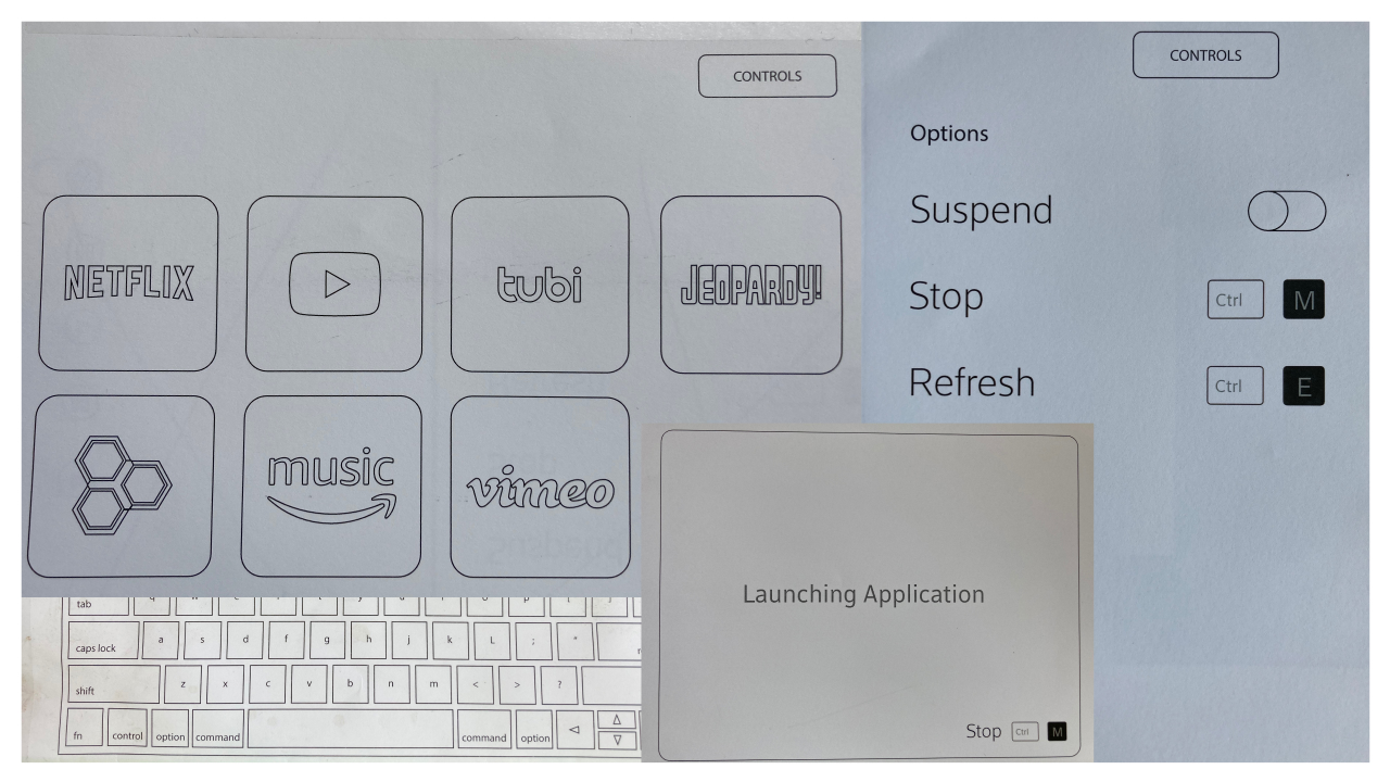 Testing version three came later during our run-up to deployment for version six. We added more screens and toasts to the test to show participants feedback per their actions. In addition to that, we added an Xfinity remote. The task was to use the keyboard or remote to open, suspend, then return home.